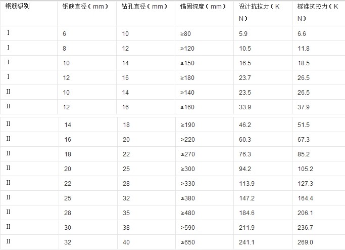 5、如同预埋,后置钢筋具有优越的荷载一位移特性。 6、耐热性好,可埋筋后进行焊接。