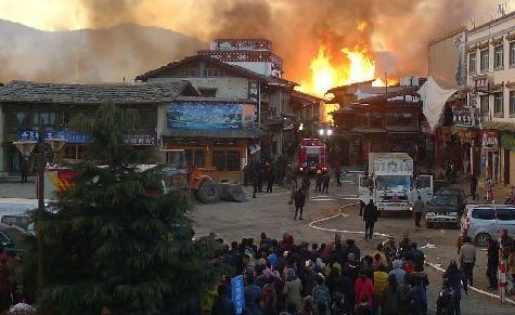 格里拉县独克宗古城1月11日1时27分发生火灾。截至8时,火灾仍在扑救。加固公司介绍起火原因正在调查中,目前暂无人员伤亡报告。火灾发生后,香格里拉县已组织武警、消防、森警等赶赴现场扑救。目前现场的相关扑救队伍已达到1000余人,火场东北方向的火势暂时得到控制,西南方向的火势仍在蔓延。