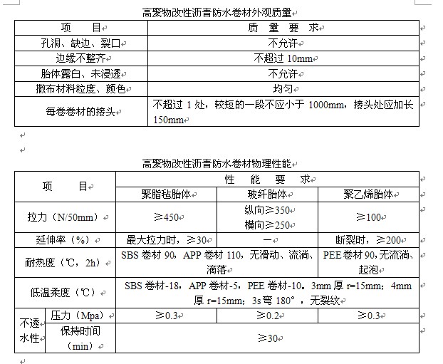 油膏的技术性能要求高聚物改性沥青防水卷材外观质量