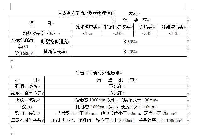合成高分子防水卷材外观质量合成高分子防水卷材物理性能