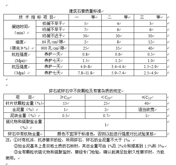 消石灰粉的技术指标 建筑石膏质量标准碎石或卵石中不良颗粒及有害杂质的规定石子的颗粒强度石子的压碎指标值