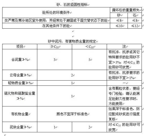 砂、石的坚固性指标砂中泥污、有害物质含量的规定烧结普通砖耐久性能鉴别指标