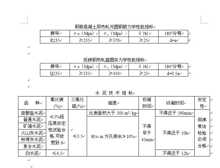 钢筋混凝土用热轧光圆钢筋力学性能指标低碳钢热轧盘圆条力学性能指标水泥技术指标水泥的标号指标