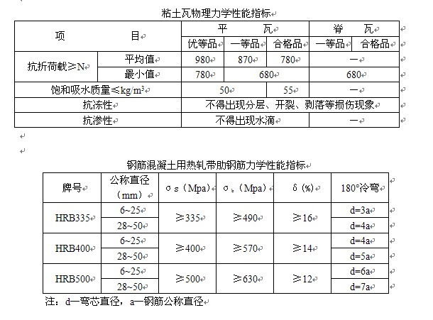 粘土瓦物理力学性能指标钢筋混凝土用热轧带肋钢筋力学性能指标