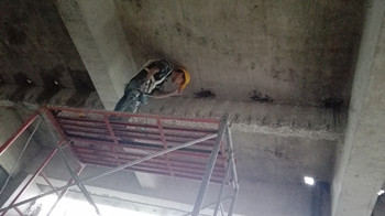 如果是结构裂缝还是变形裂缝,如果是结构裂缝 就要碳纤维加固,如果是温度造成的裂缝就用石膏填实,水泥砂浆抹面就可以了。不行的话就要增大截面加固处理!!