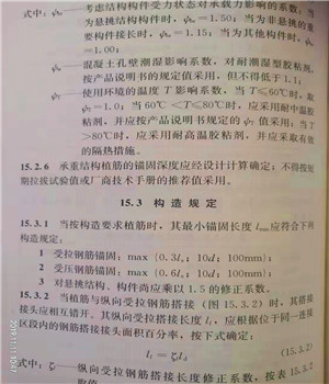 而化学植筋由于长度不受限制,破坏形态易于控制,故适用于静力及抗震设防烈度≤8度的结构构件及非结构构件的锚固连接。现已广泛应用于已有建筑物的加固改造工程。如:施工中漏埋钢筋或钢筋偏离设计位置的补救,构件加大截面加固的补筋,上部结构扩跨、顶升对梁、柱的接长,房屋加层接柱和高层建筑增设剪力墙的植筋等。